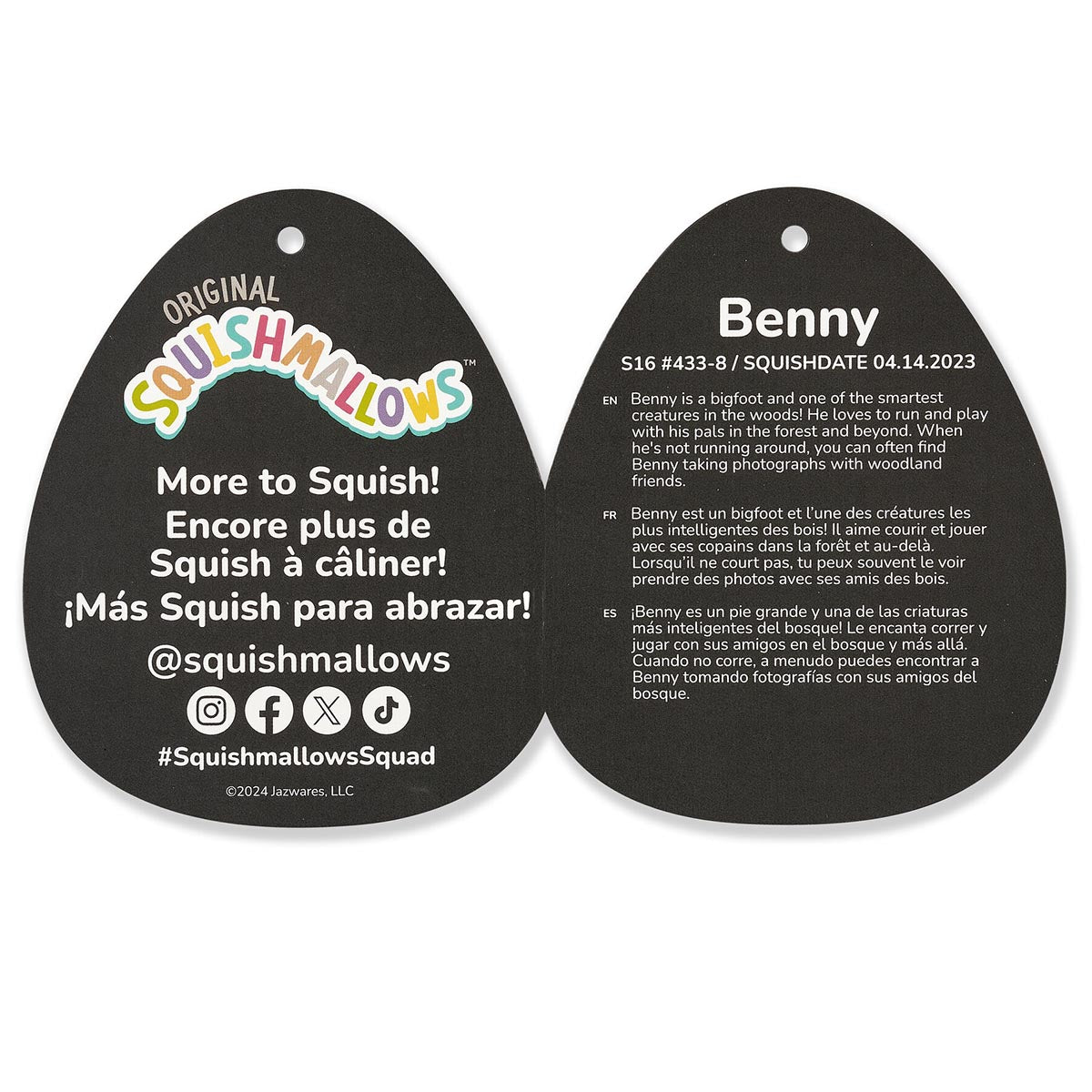 Meet your new bestie. Benny! Each Select Series Squishmallows plush comes with its own unique name and bio and makes the perfect cuddly companion for long flights. comfy nights—even movie frights. Benny is only by Original Squishmallows and available in limited quantities exclusively online. Join the Squad today!